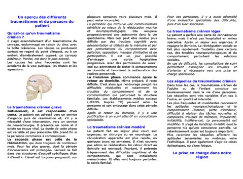 Un suivi au long cours en consultations du Réseau des Traumatisés Crâniens Nord Pas de Calais peut s’avérer indispensables devant les difficultés rencontrées.